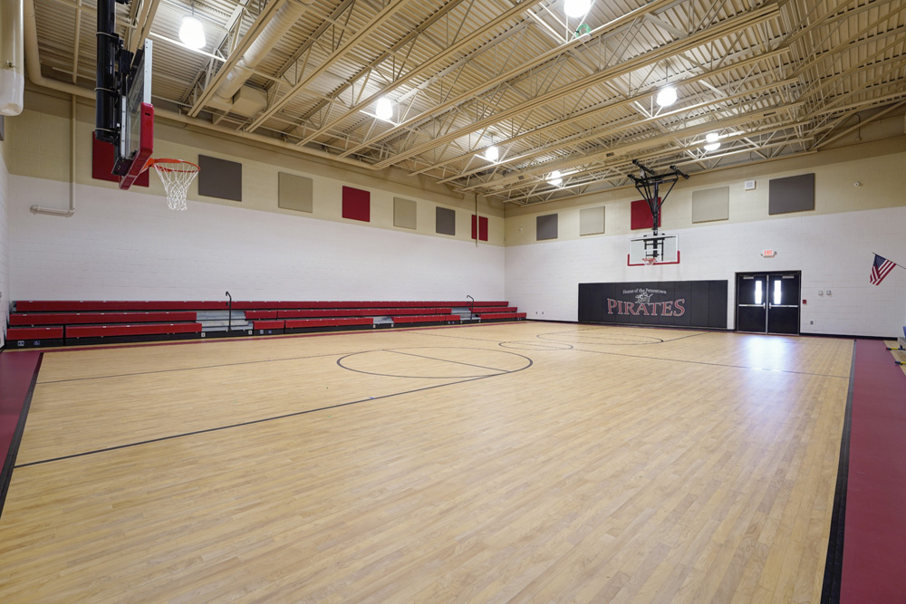 The middle school wing will contain grades 5th-8th which includes a science lab and art classroom. At the entrance of the middle school wing is a STEM lab that will be shared by the full school. The STEM lab is on full display to the commons / dining room for all students to view the the creative projects. A full size middle school gymnasium that will be located near the dining room and will have bleacher seating for the schools full enrollment.