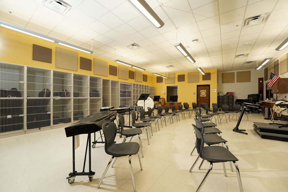 The elementary school side is divided into two separate wings that will contain grades PK-1st and grades 2nd-4th. At the entrance ofthe elementary school wing an elevated music classroom that will serve as a performing platform that opens to the dining room. A physical educational classroom will be adjacent to the dining room.
